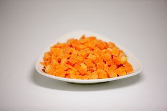 Тыква очень полезная овощная составляющая в рационе собак. Содержит витамины и клетчатку, необходимую для правильной работы кишечника, а благодаря шоковой заморозке она лучше усваивается организмом.