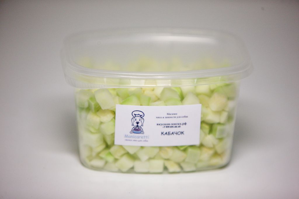 Кабачок очень полезная овощная составляющая в рационе собак. Гипоаллергенен. Содержит витамины и клетчатку, необходимую для правильной работы кишечника, а благодаря шоковой заморозке лучше усваивается организмом.