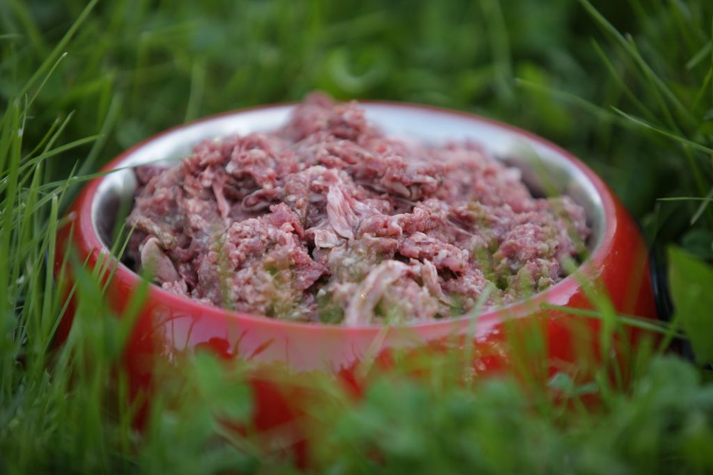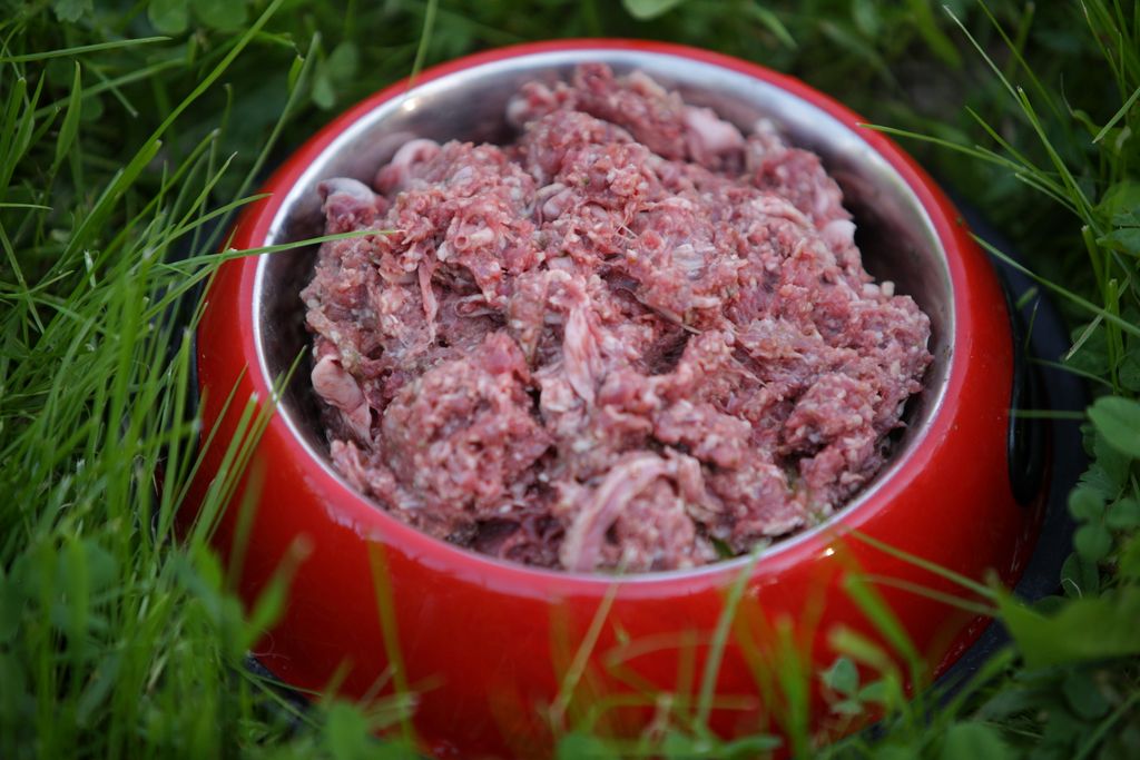 Удобный готовый натуральный сырой обед для Вашей собаки в виде мелкорубленной тушки кролика, субпродуктов кролика (сердце, легкое, печень) и овощей.